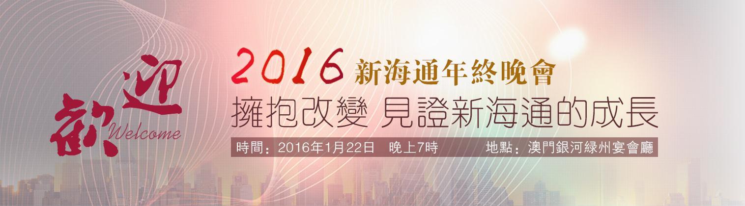 新海通年會于 2016年1月22日晚19:00 在澳門銀河綠洲宴會廳舉行,歡迎莅臨!