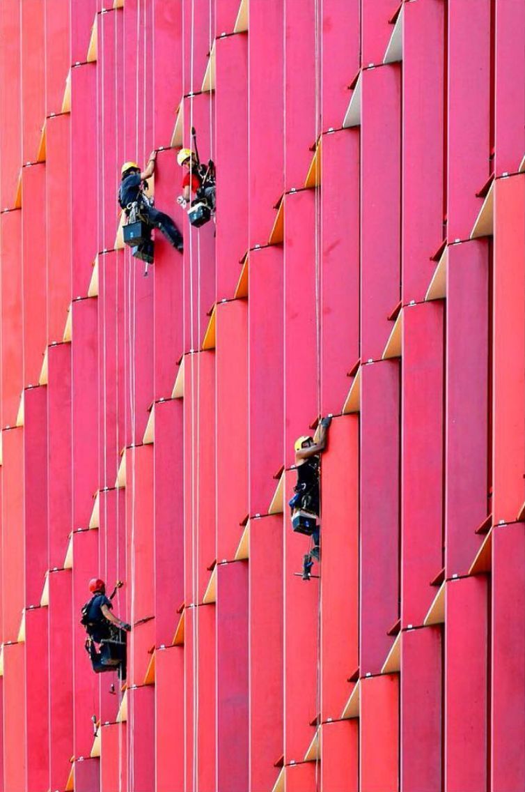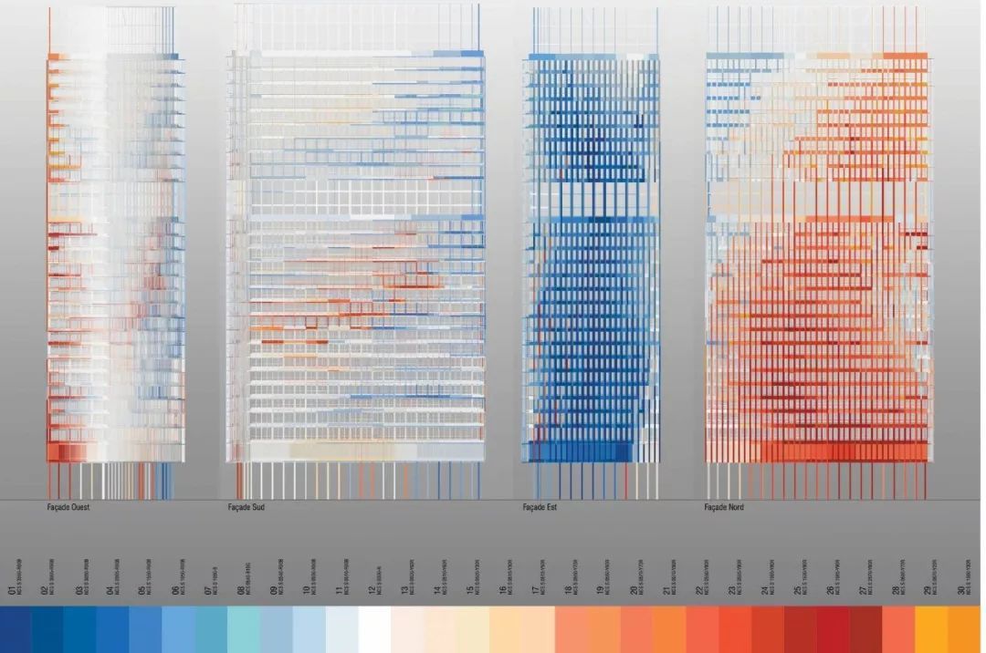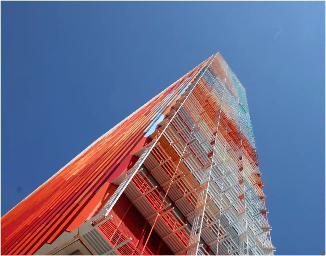 La Marseillaise 是法國國歌的名字,又名為馬賽曲,這棟大樓的外牆表皮的設計以法國國旗的顔色:紅、白、藍為主調。