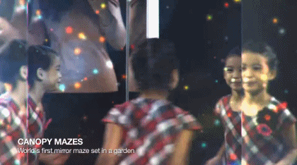鏡子迷宮反射出周遭,猶如跌入愛麗絲的奇幻夢境。