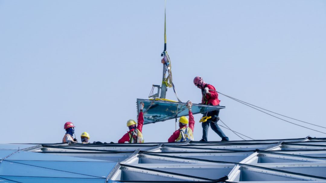 外觀每塊玻璃都是獨一無二,有着特定的尺寸,安裝需要相當高的精準度。一天也隻能安裝50-80塊左右。